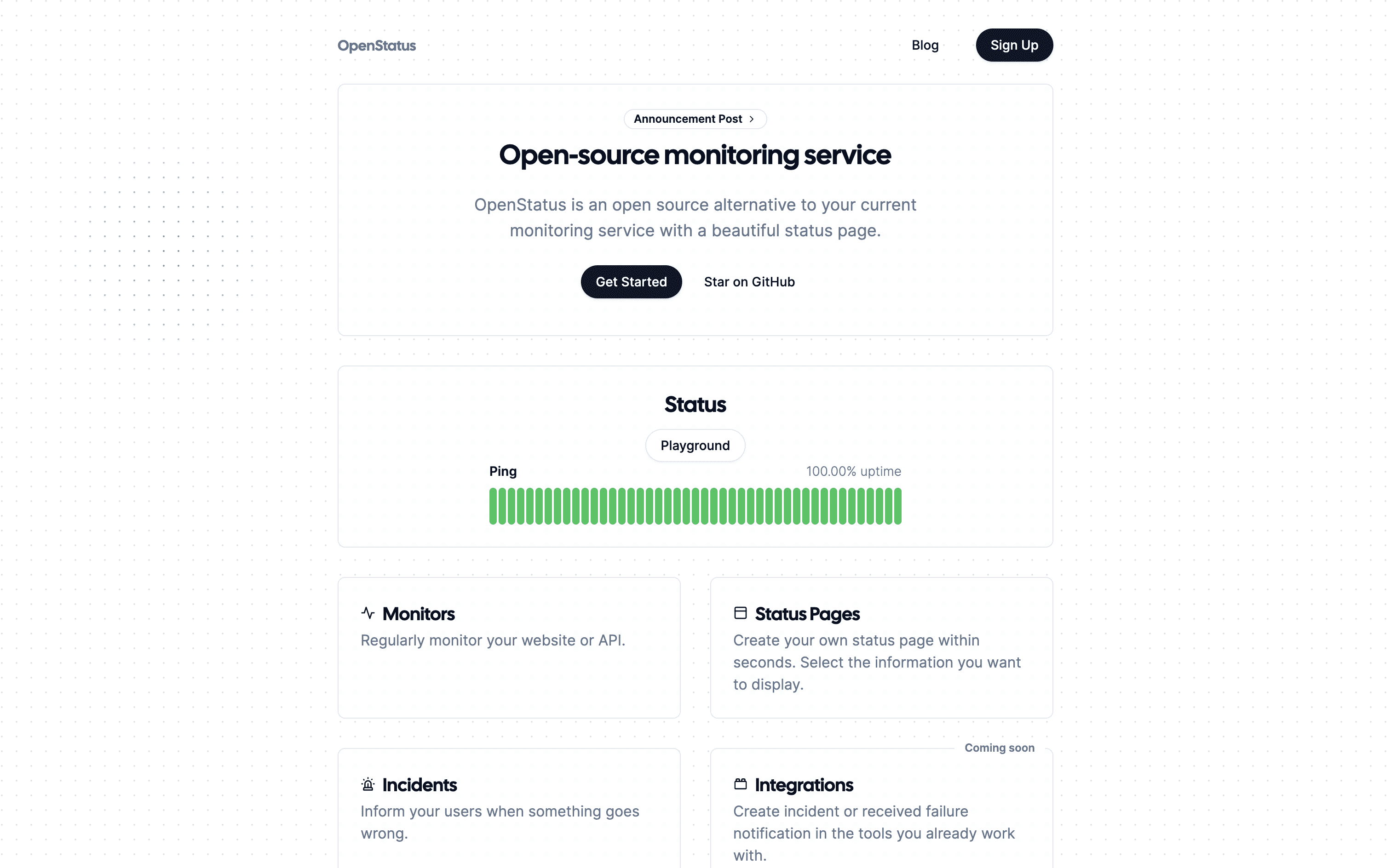 openstatus is an open-source platform that combines status pages and uptime monitoring in a single tool. Keep your users informed and your services reliable. Available as a managed service or self-hosted.